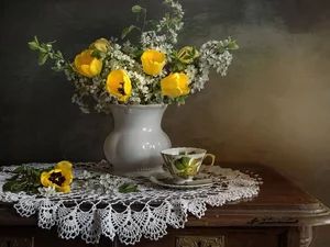 ribbon, eggs, Easter, nest, boarding, Tulips, Yellow, Blue