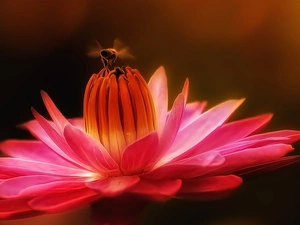 bouquet, Present, boarding, Golden automobile, Blue, roses, Pink, ribbon