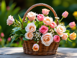 Wooden, box, roses, Pink, Flowers