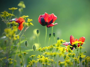 Flowers, Meadow, cornflowers, camomiles, papavers, Wildflowers