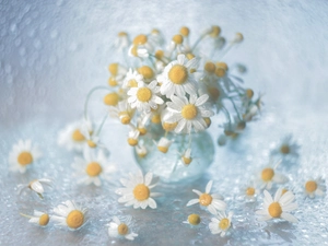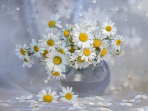 Corn Chamomile, tablecloth, Flowers, vase