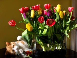 Present, Tulips, hearts, coffee, Flowers, envelope, boarding