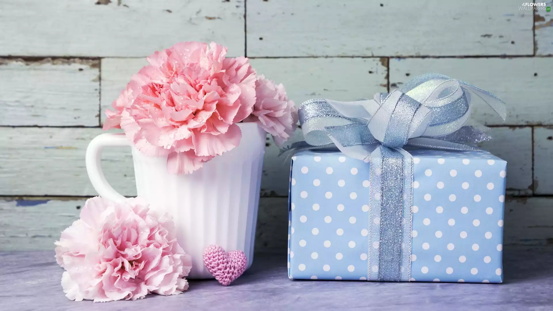 Heart, Present, cloves, Cup, Colourfull Flowers