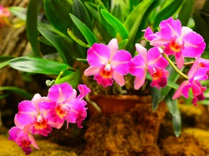 grass, Colourfull Flowers, drops, Rosy, leaves, checkerboard
