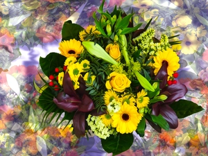 flowers, Tulips, napkin, Present, umbrella, bouquet, composition, drops
