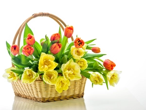 bouquet, Tulips, frame, jug, ornamentation, composition, Easter, eggs