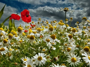 girl, Red, papavers, Field