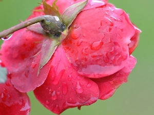 Close, rose, leaves, Flowers