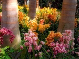 forest, Flowers, viewes, Lod on the beach, trees, Leucojum