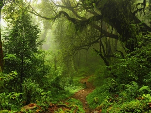 Washington State, The United States, Olympic National Park, forest, fern, Path, trees, viewes, mossy