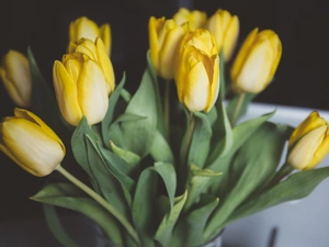 Garden, Window, trees, viewes, grass, Spring, Flowers, Tulips, flourishing