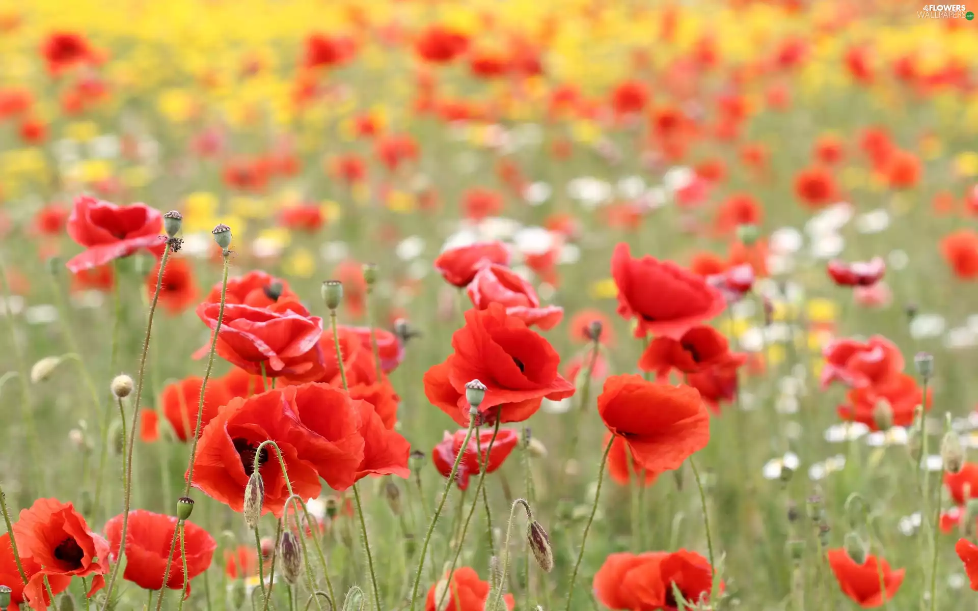 Meadow, Red, papavers