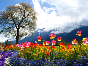 Tulips, pansies, Pink, Hyacinths, Flowers