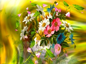 Colourfull Flowers, White, pink