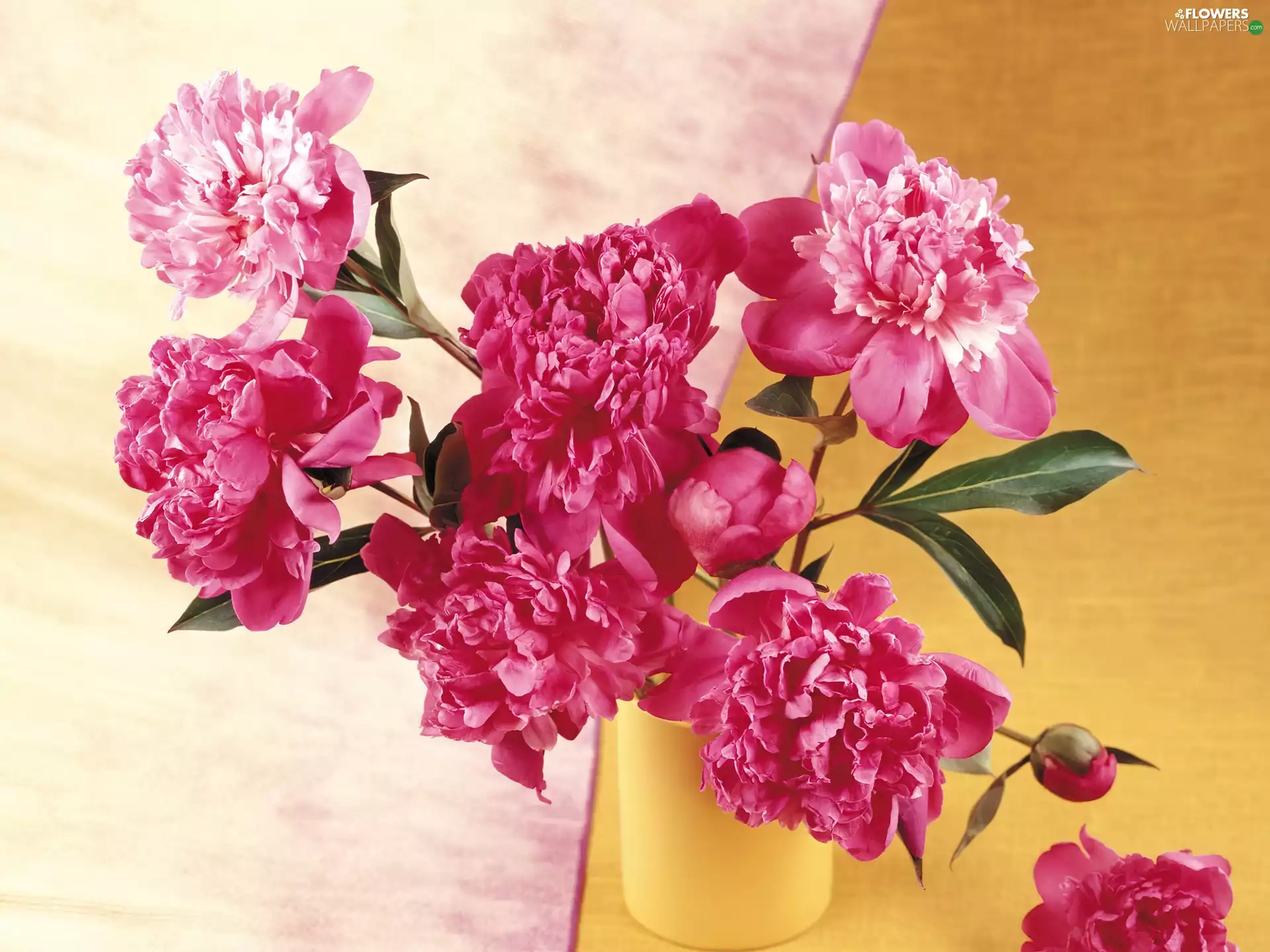 Pink, Yellow, vase, Peonies