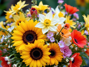 Pink, daisies, bouquet, Yellow, Flowers, Tulips, basket