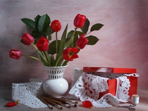 Black, background, Red-Yellow, Dalia, Colourfull Flowers